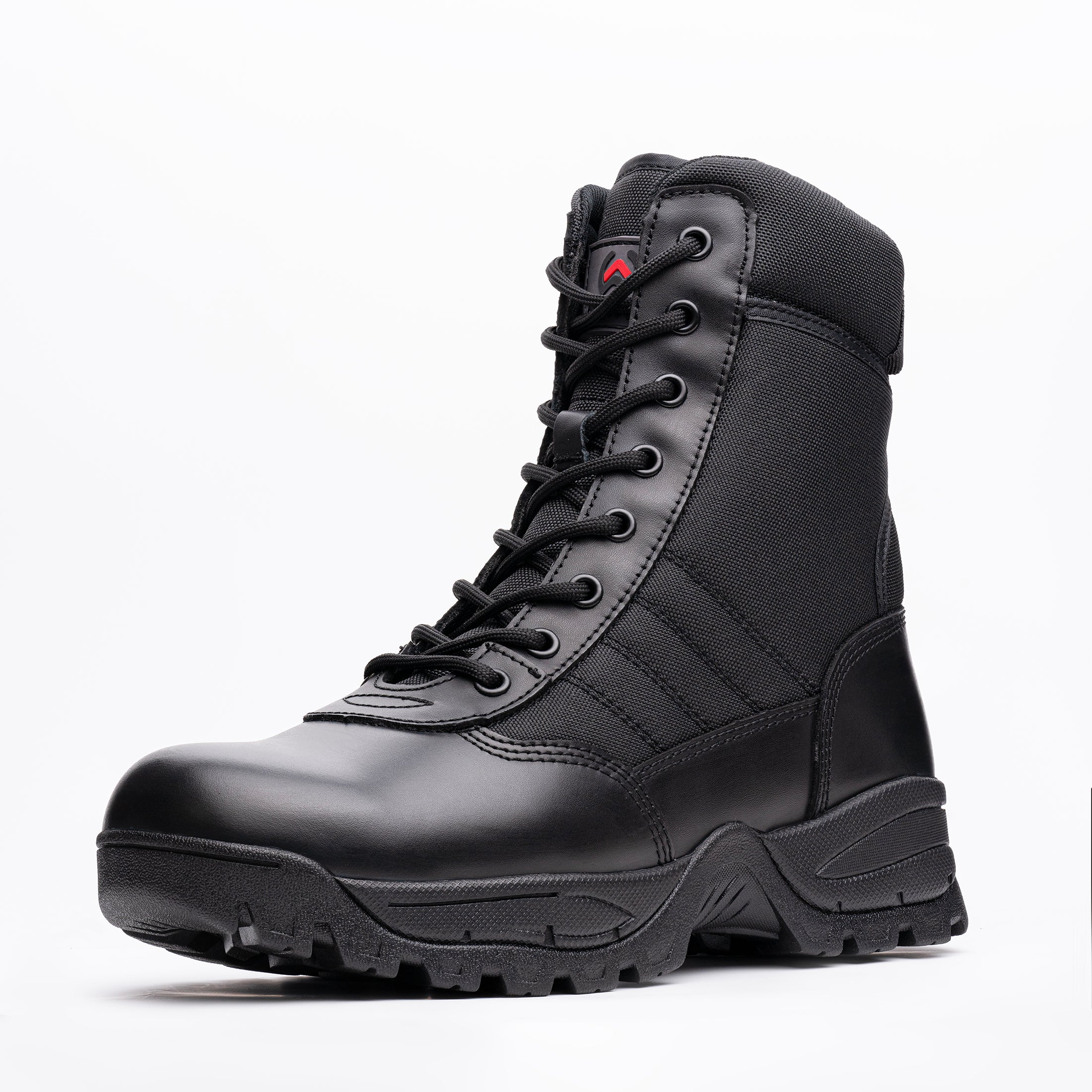 Convenient and Reliable: WIDEWAY tactical boots feature a classic 8-eyelet lacing system that secures these tactical work boots from toe to top. The folded tongue prevents grit and pebbles,Additionally, a side zipper allows for quicker on and off, Because every second counts in your operations. These boots provide support for everyday military training, police patrols, hunting, and heavy-duty work,even motorcycle riding.